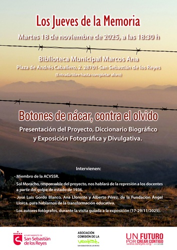 Coincidiendo con el 87º aniversario de la proclamación de la Segunda República, el 14 de abril de 2018 se colocó un mural en el Centro Municipal de Formación Ocupacional Marcelino Camacho de nuestro municipio, en homenaje a todos los vecinos y vecinas de San Sebastián de los Reyes, víctimas y represaliados de la Guerra Civil Española y el franquismo.