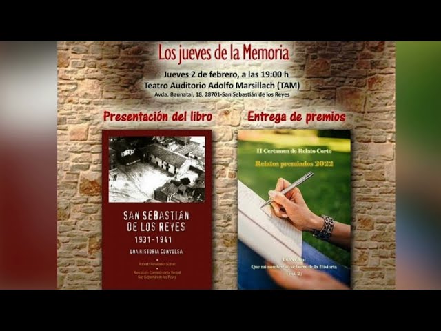 El pasado 2 de febrero iniciamos en el TAM los jueves de la Memoria de 2023 con la presentación del libro San Sebastián de los Reyes 1931 a 1941: Una historia convulsa, escrito por Roberto Fernández Suárez y varios miembros de la Asociación. También se entregaron los premios del II Certamen de Relato Corto sobre Memoria Histórica Democrática.