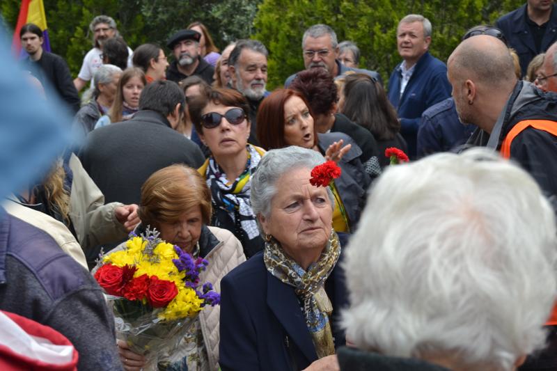 La ofrenda floral que se hace al final del acto este año fue especialmente emotiva. Uno de los familiares más mayores, Eugenio, hijo de Martina Aparicio, la única mujer fusilada, y una de las más jóvenes, Alba, biznieta de Facundo Navacerrada, se encargaron de descubrir el mural. A continuación, descendientes de los fusilados leyeron uno a uno los 108 nombres, su edad y la fecha de fusilamiento.