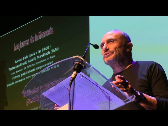 Bajo el título “Exiliados y refugiados: pasado y presente”, dos miembros de la Junta Directiva de la Asociación, Carmen Carreras y Julio Herrero, presentaron a Pepe Viyuela. Si presentarle es complicado en cualquier sitio, mucho más en San Sebastián de los Reyes. Aunque todos los presentes le conocen, comentaron algunas cosas que le caracterizan y le hacen un personaje singular.