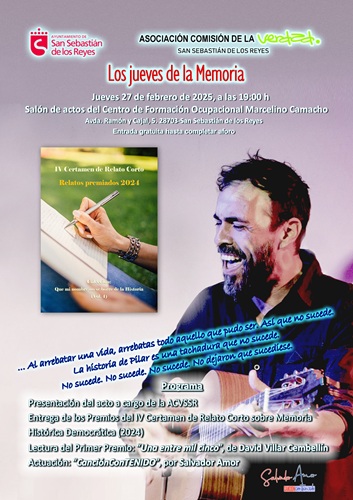El jueves 27 de febrero tendrá lugar el primer Jueves de la Memoria de este año. Estará dedicado a entregar los diplomas a los autores del primer premio y de los 7 accésits que el jurado ha seleccionado.