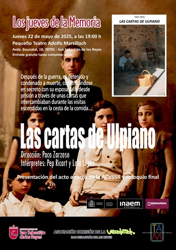El jueves 22 de mayo de 2025 tendrá lugar, en el Pequeño Teatro del TAM (Avda. Baunatal, 18, de San Sebastián de los Reyes, Metro Baunatal, Línea 10), una lectura dramatizada de «Las cartas de Ulpiano«, un proyecto de investigación y teatral realizado por la Compañía de Teatro Hongaresa, con la colaboración del Departamento de Memoria y Juventud del Ayuntamiento de Sagunto.